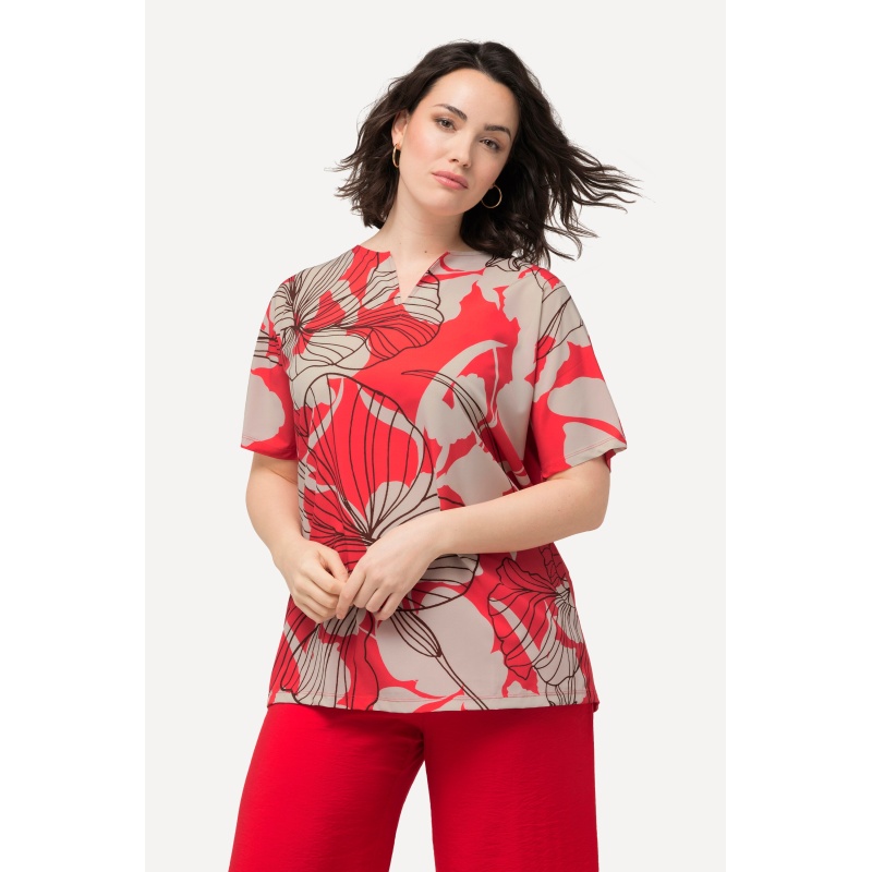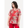Pluusi esiosa on pehmest kootud kangast värvilise lillelise trükiga.Tuunika kaelus ja lühikesed varrukad. Lihtne seljaosa pehmest trikoosist Elastne materjal.