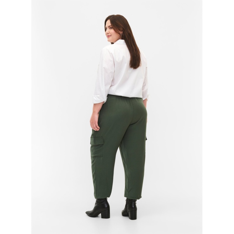Trendikad püksid, millel on suured taskud ja elastne nööriga vöökoht. Püksid istuvad vabalt puusades ja reites ning on viimistletud elastsete säärekästega.